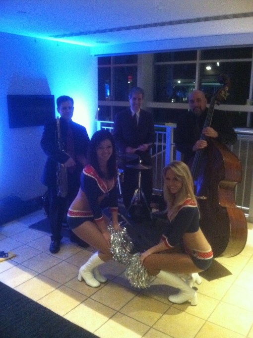 Performing at a reception for Tom Brady in Gillette Stadium. Photo w/ Jeff Harrington-sax, George Farrell-Drums and New England Patriot’s Cheerleaders.